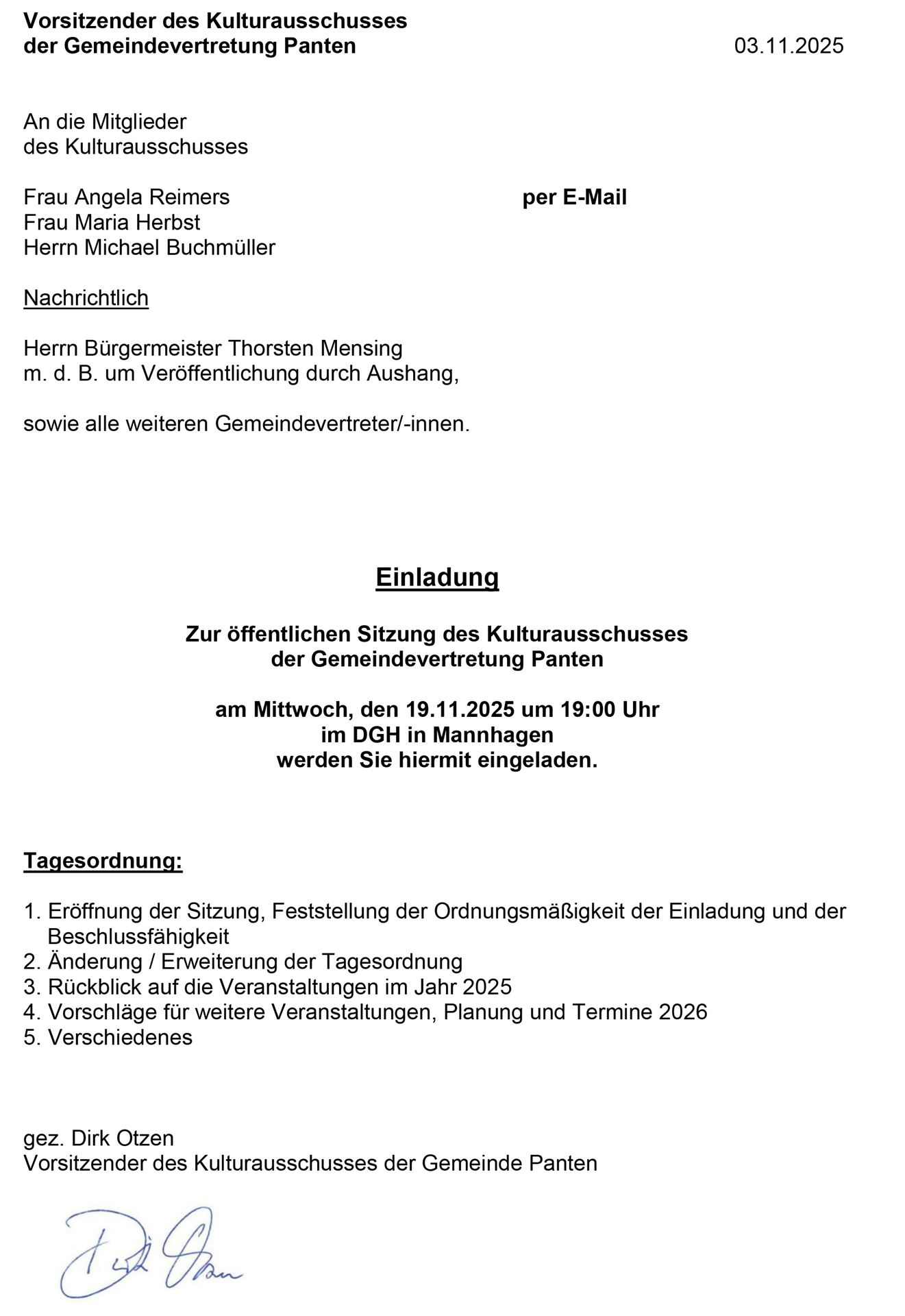 Öffentliche Sitzung des Kulturausschusses